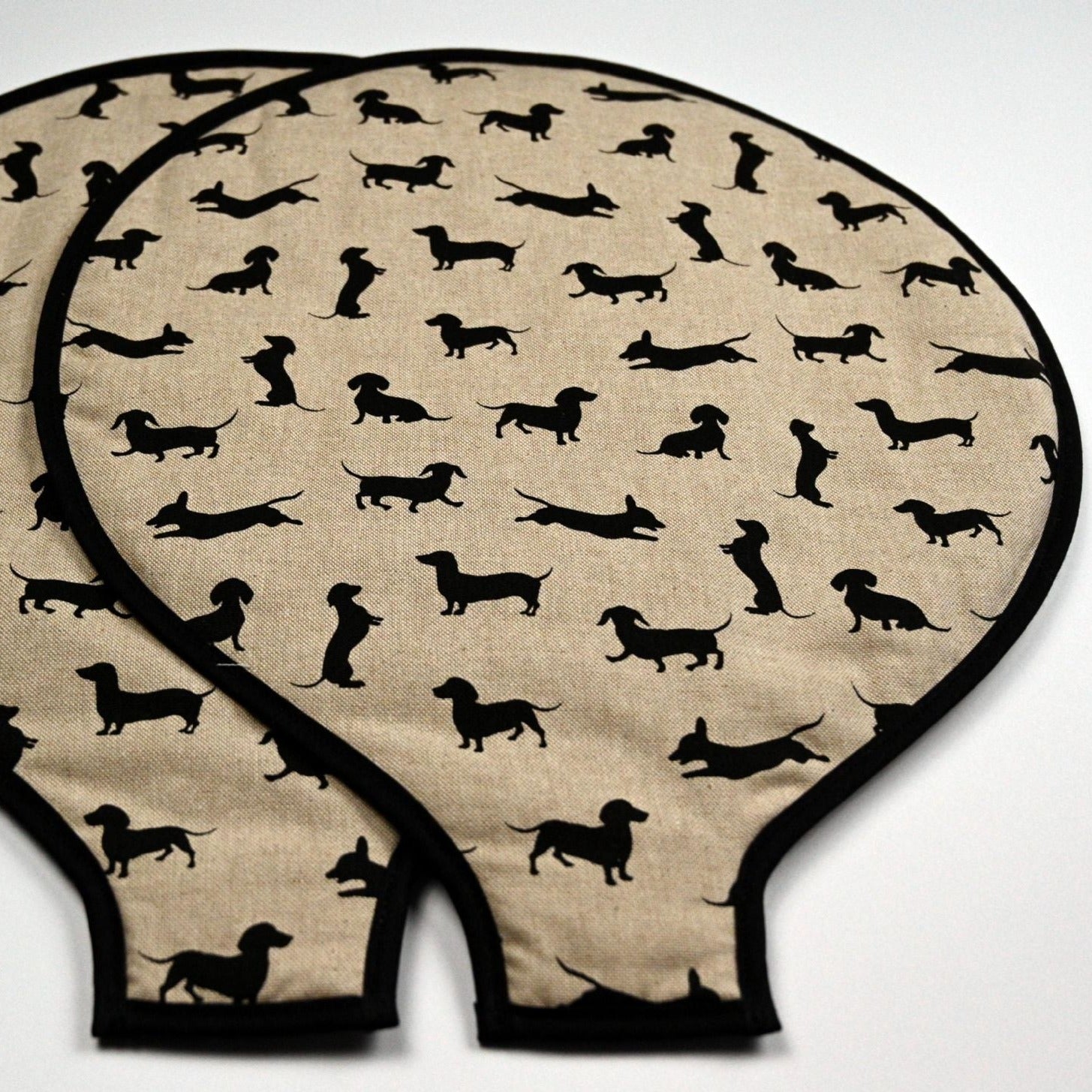 Magnetic Aga Tops, Range/Hob Covers, Black Dachshund (pair)