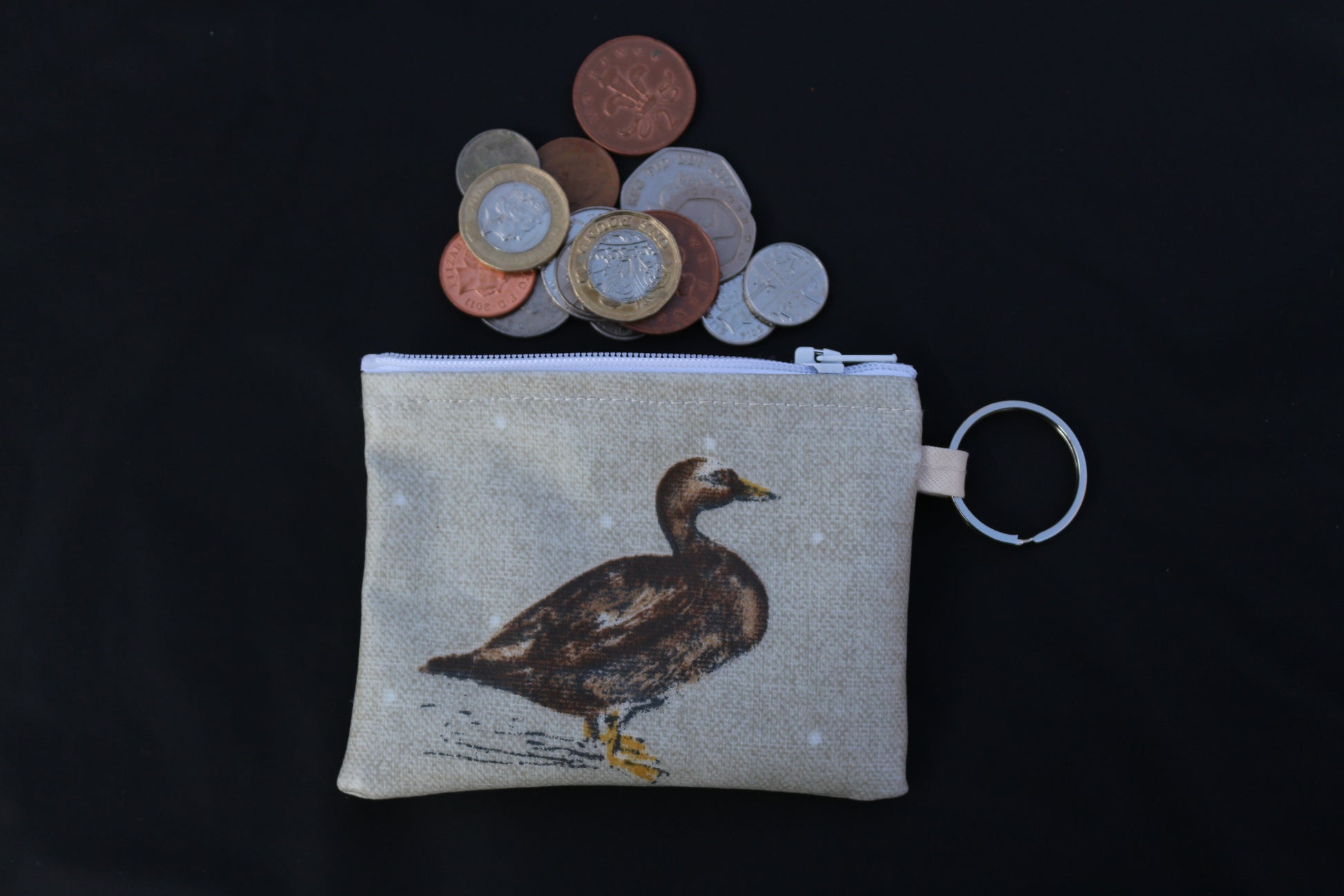Waterproof zipped small mini wallet. A perfect size for use as a coin purse, or a credit, debit or store card holder. Made with a ring attachment to attach your keys. Products are made from pattern repeat fabric so the design featured on each item may vary.